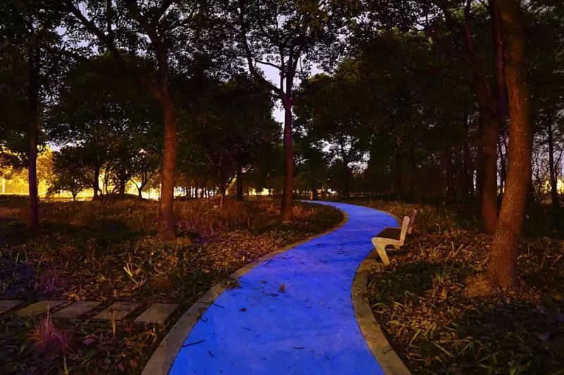 但是這樣的熒光步道有一個缺點(diǎn)就是:如果白天是陰天或者雨天,就沒法接受太陽的照耀,也就沒法在夜晚發出夢幻的藍光瞭(le)。