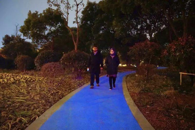 夜晚走在這樣的步道上,有沒有點兒夢幻感?