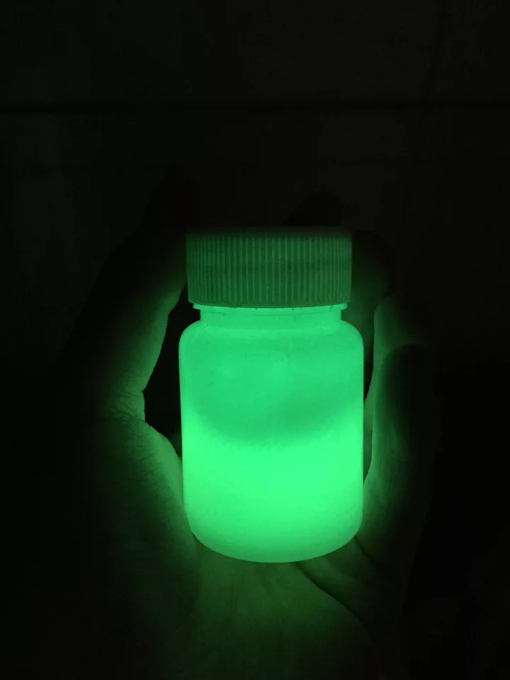 興盛夜光粉屬堿土鋁酸鹽型長餘輝發光材料,可以在日光或燈光照射下吸光5-20分鍾後,将吸收的光能轉化後儲存在晶格之中,在暗處又可将能量轉化爲光能而發光,可有效持續發光(發光亮度大於10mcd/m2)達到8-10小時,發光亮度衰減到人的肉眼觀察下限(0.32mcd/m2)的時間更可達7小時以上,化學性質穩定,吸光、蓄光、發光過程可重複進行,使用壽命可達20年以上。該類材料無毒害,不含放射性,生産過程也無有害物質産生。